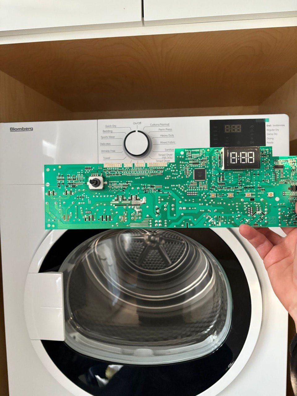 When you press start and nothing happens, common causes include a faulty door switch (the dryer won’t engage unless the door sensor confirms it’s fully closed), a blown thermal fuse, a failed start switch or push-to-start button, a broken drive belt (many dryer models have a belt switch that cuts power to the motor if the belt snaps), or a failed motor relay on the control board. We test each component systematically to avoid replacing parts you don’t need.