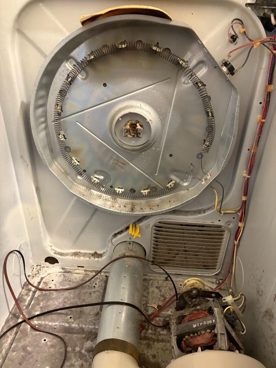 Repair if: Under 10 years old with a standard component failure — heating element, thermal fuse, belt, rollers, gas valve coils, or igniter. These are all wear-and-tear parts that don’t indicate a fundamental problem with the dryer. Most repairs cost $250–$350 total.