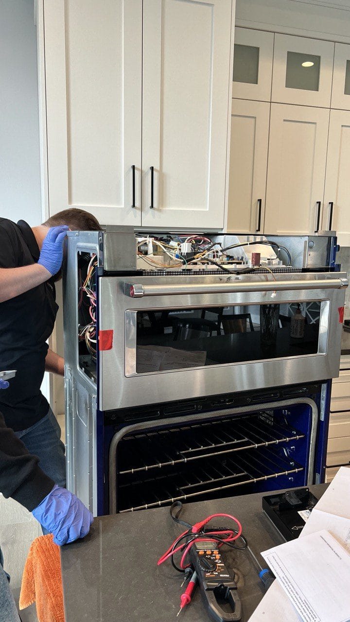 Your technician inspects the oven cavity, tests heating elements and sensors with a multimeter, checks gas ignition components on gas models, and verifies temperature accuracy. You get a clear diagnosis and firm quote.